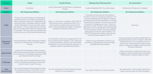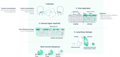 All over the world, drug manufacturers and researchers rush to develop a medical solution to the COVID-19 outbreak. Companies are currently exploring four approaches to fight against COVID-19: passive immunization, antivirals, anti-inflammatory drugs and active immunization (vaccines).