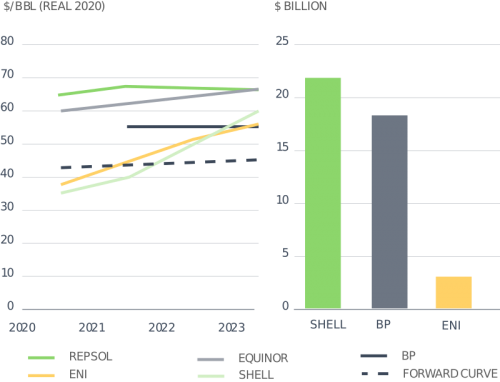 - Shell, Total, Equinor, and Eni have an “oil + clean energy” vision.