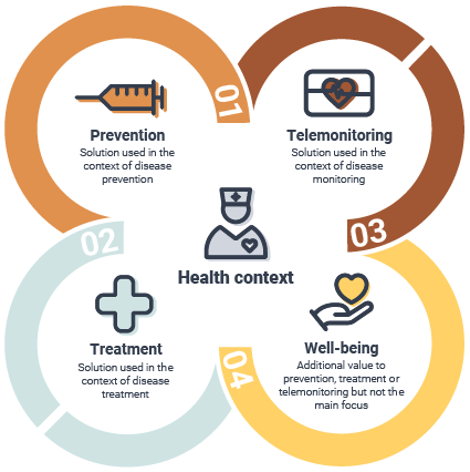 - When distance is a critical factor, the delivery of health care services can exploit ICT for diagnosing, treating, and preventing diseases and injuries.
