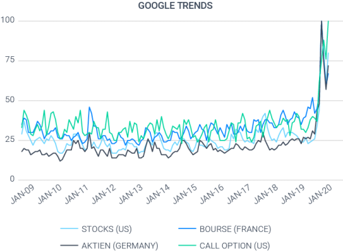 Spikes in Google Trends search item “Stocks” and online brokers' new accounts opening at the moment lockdown was implemented, imply aid money has likely gone to the equity markets.