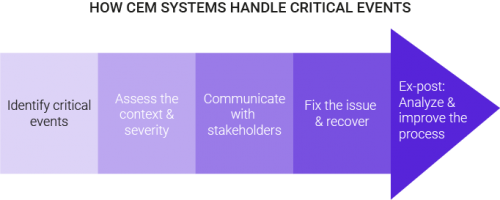 Critical Event Management (CEM) software identifies and handles in an automated way threats or incidents within a place or organization. These systems communicate with all stakeholders impacted by the event, reducing the response time to tackle issues and the duration of disruption.