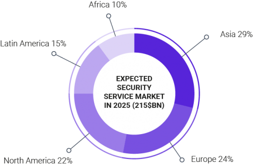 • The global security services market is growing at 5% and is expected to reach $215bn by 2025.