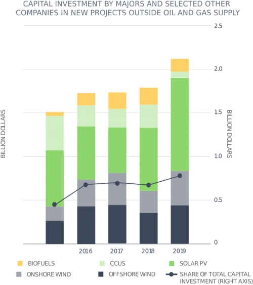 - Shell, Total, Equinor, and Eni have an “oil + clean energy” vision.