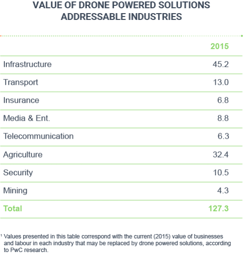 - Agriculture represented more than 25% of drone’s total addressable market in 2015.