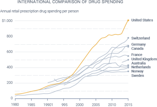 - U.S. prescription drug spending has been increasing faster than in most other countries.